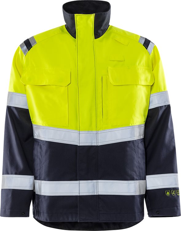 Huomiovaatesertifioitu, itsessään paloturvallisesta materiaalista valmistettu takki. Sopii ATEX-ympäristöihin, ei metalliosia. Hyväksytty teolliseen pesuun.