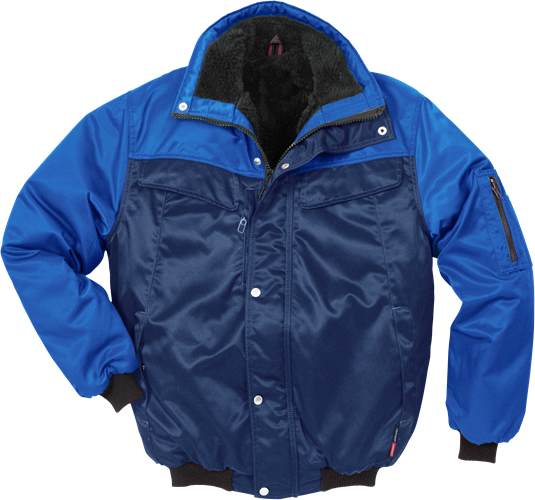 Lämmin ja kestävä talvitakki likaa-, öljyä- ja vettähylkivästä materiaalista. Tekoturkisvuori ja heijastavia yksityiskohtia sivusaumoissa.